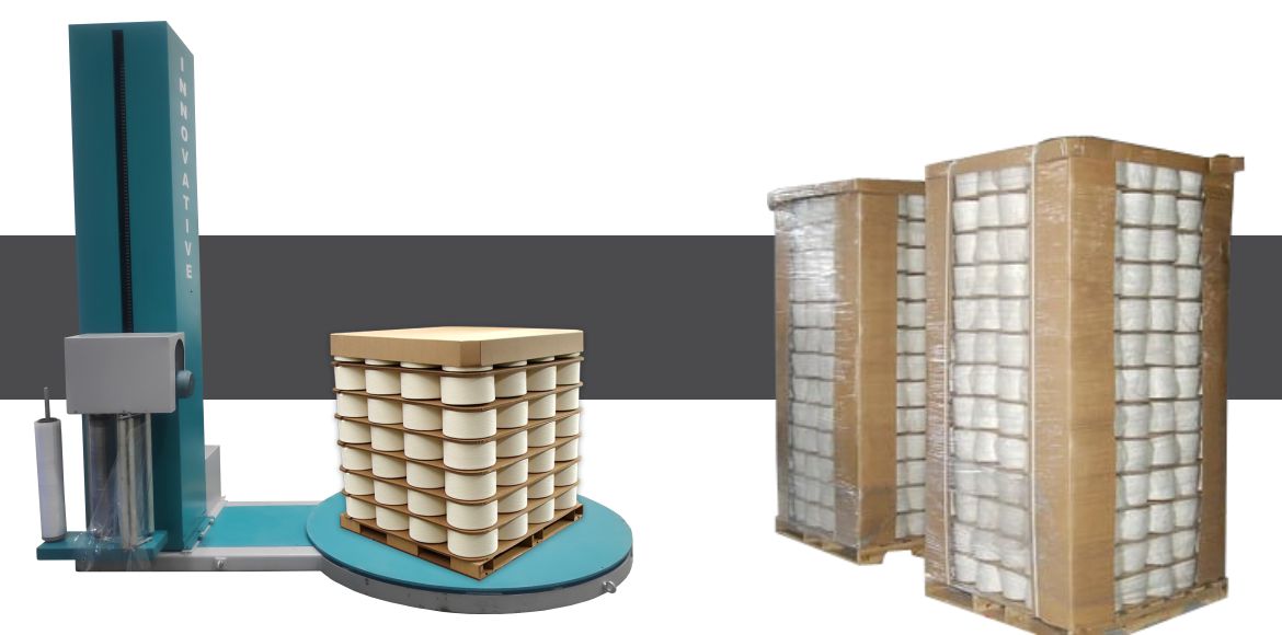 Innovative’s Pallet wrapping machine for cotton yarn:-