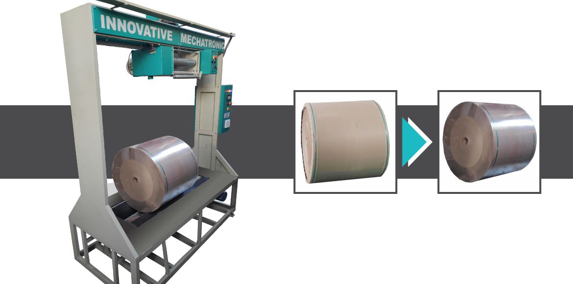 When your product is in Round shape and you wanted to diameter pack it then that type of packing machine we called Radial Roll Type packing machine. Roll wrapping machine is designed to apply layers of film across the whole Diameter surface of the Roll also called Paper Roll stretch wrap Machine.